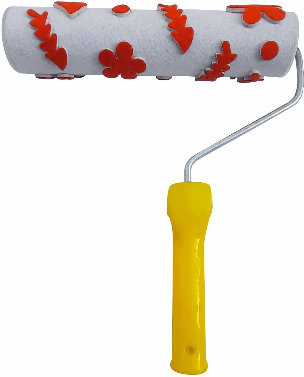 A designer paint roller with a textured pattern, ideal for creating stylish wall finishes. Suitable for smooth and rough surfaces, compatible with all paint types, and includes a water-resistant core for durability.
